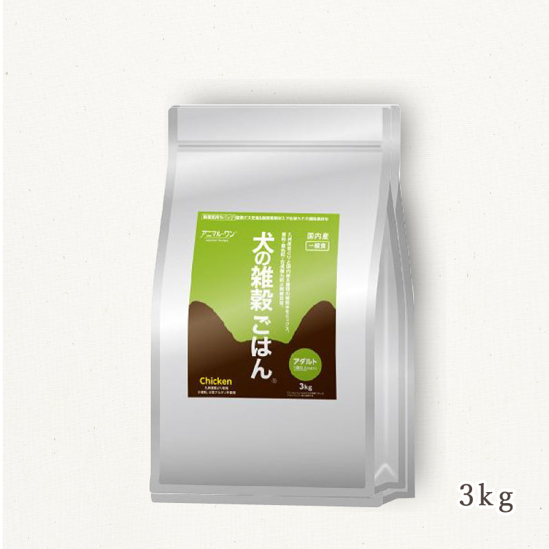 ロングセラー商品「犬の雑穀ごはん」は、九州産の若どりと国内産8種類の雑穀をミックスした、かつお風味のナチュラルなドックフードです。
